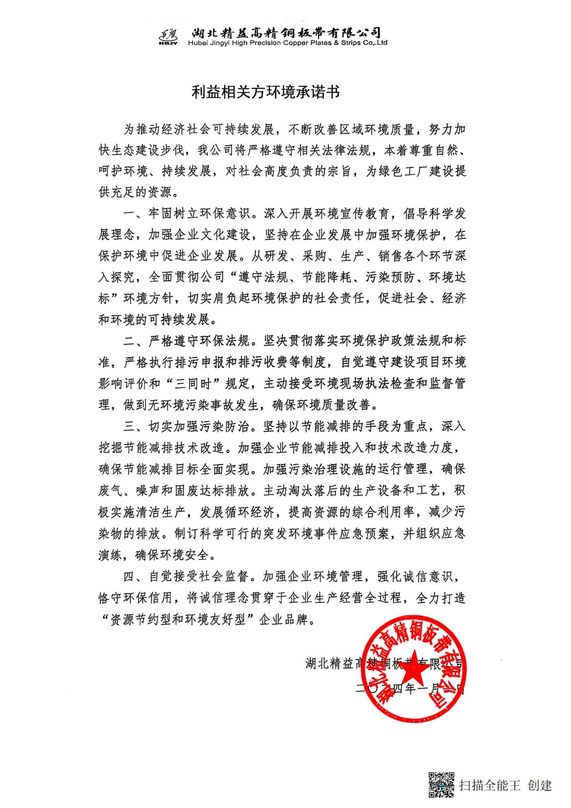 利益相关方环境承诺书
